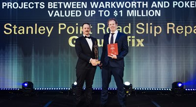 Congratulations to our customer Groundfix who won the Project Category A award for their impressive work on the Stanley Point Road Slip Repair.