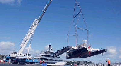 NZ Crane assisted and supported the team from Rapido boat builders as they successfully launch one of its amazing new trimarans in Auckland recently.