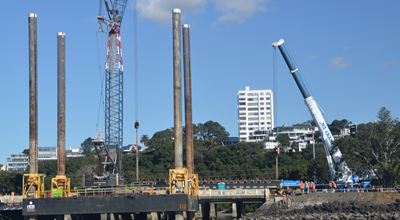 As part of the improvements to Auckland’s roads and cycleways, a new pedestrian bridge was lifted and placed on the northern (sea) side of the existing Point Resolution Estuary Bridge.